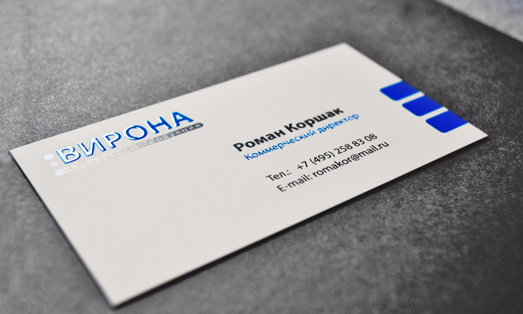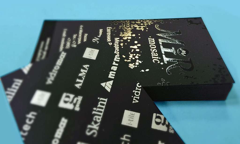Компания «РПК Эффект» предлагает также покрытие визиток, напечатанных методом шелкографии, УФ лаком, создание металлизированного, рельефного, светоотражающего изображения или текста.