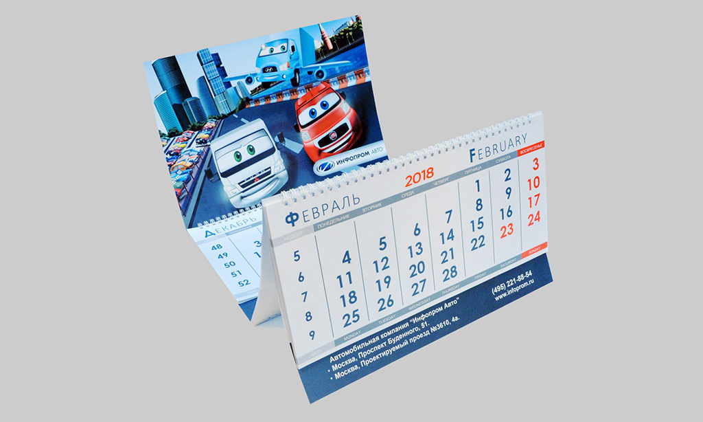 Top-блок квартального календаря, безусловно, является важнейшим с визуальной точки зрения, элементом всей конструкции. Ведь именно он представляет собой поле для имиджевой составляющей. То есть это место основного сосредоточения всей красоты и всего креатива, вложенного в Ваш календарь.