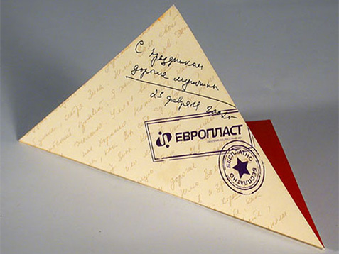 Корпоративные открытки на 23 февраля могут иметь самую разнообразную форму. Одним из наиболее популярных форматов в наши дни является так называемый «Евроформат» — сто на двести миллиметров. Это связано с форматом самого распространённого конверта. Однако корпоративные открытки на 23 февраля бывают и нестандартного формата. Такие открытки могут иметь сложную вырубку и даже повторять форму определённого предмета. Особенно эффектно выглядят корпоративные открытки на 23 февраля с Pop-Up эффектом.