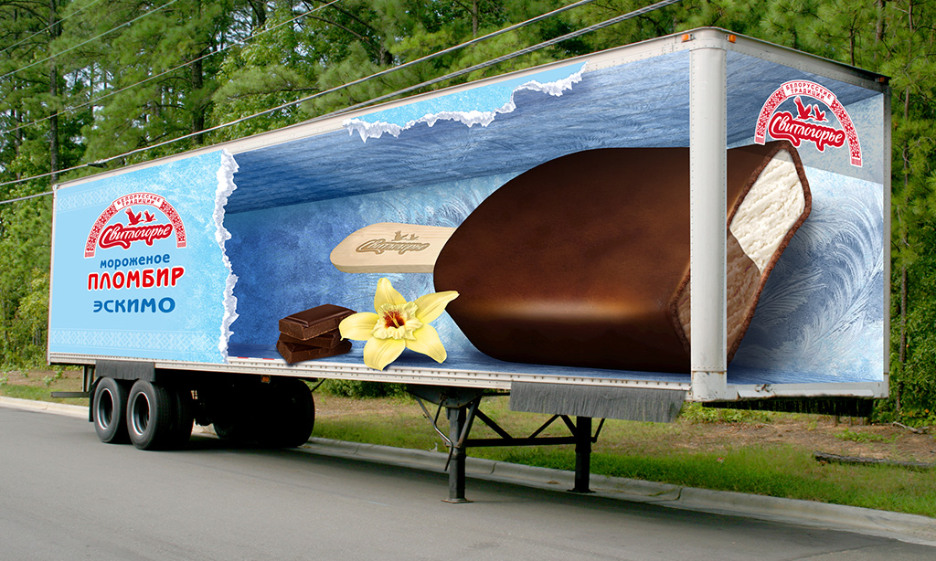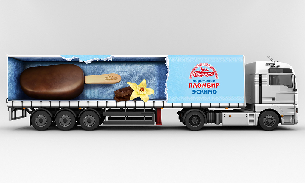 В качестве основной идеи оформления фургонов было решено использовать непосредственно образ пломбира, выполненного в технологии 3D. На этапе разработки концепции наши художники создали целый пул скетчей «от руки», изобразив мороженое в самых разных ракурсах.