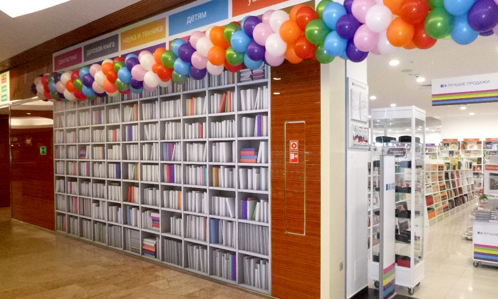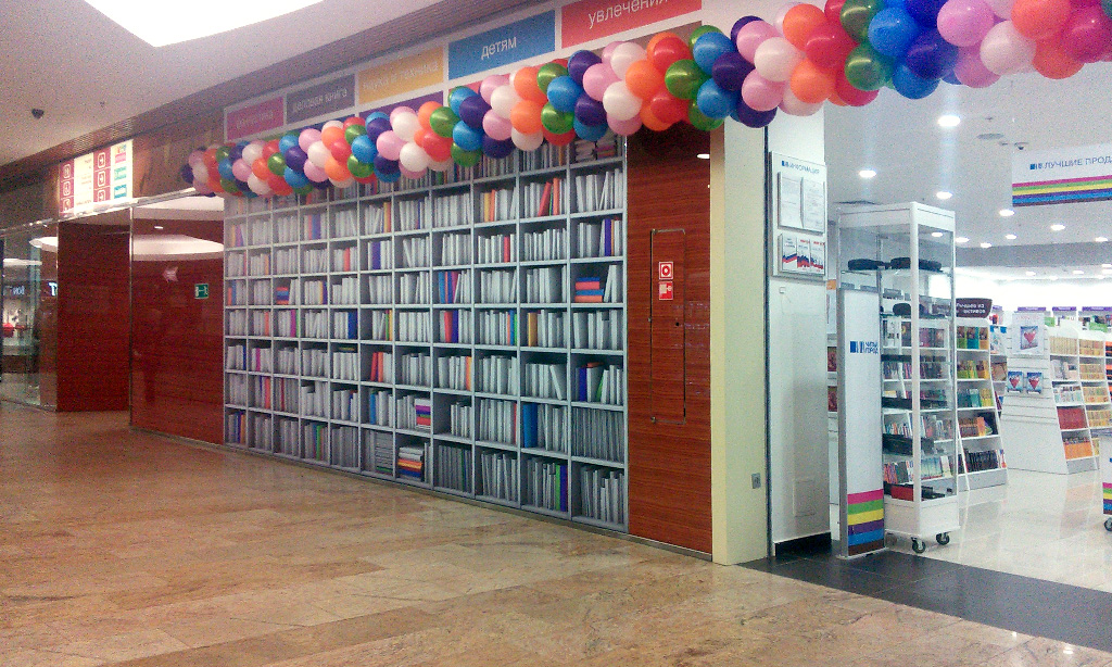 После утверждения заказчиком одного из эскизных вариантов настенного 3D стикера, началась разработка самого 3D изображения с многочисленными элементами (книгами) и сложной перспективой. Для этого был использован целый комплекс различных графических и даже инженерных редакторов, с помощью которых производилась корректировка ракурсов.