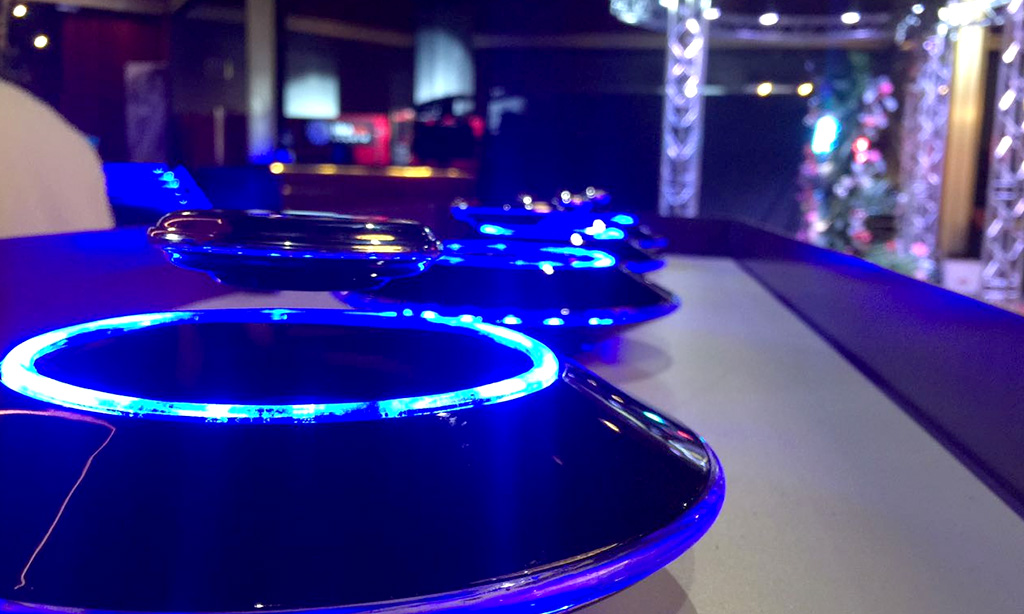 Однако основной изюминкой проекта стали, конечно же, брендированные элементы, парящие прямо в воздухе. Наши специалисты совершили это чудо с помощью технологии «Левитрон».