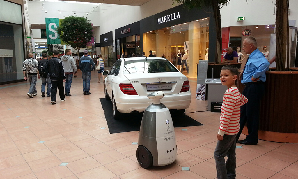 Рассказывать о новых технологиях правильнее всего с помощью высокотехнологичных девайсов. Поэтому наша промо-акция включала в себя общение посетителей с ультрасовременным роботом-консультантом «R.BOT 100». Инновации в рекламе — это один из наших любимых инструментов продвижения, и умный общительный робот как нельзя лучше подошёл на роль ключевого элемента промо-акции. Наши дизайнеры разработали специальный брендинг робота на основе фирменного стиля компании «Панавто», а IT-специалисты создали диалоговые модули, способные не только информировать покупателей, но и развлекать их.