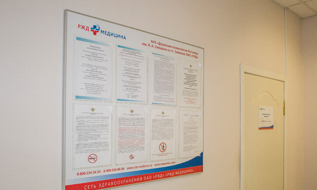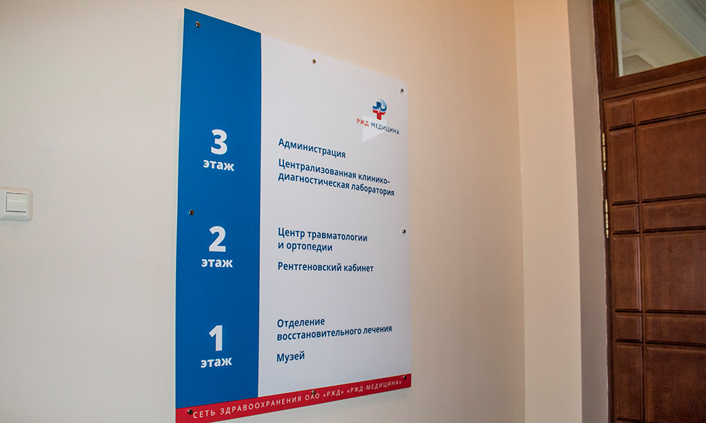 Навигационные таблички и информационные стенды были заказаны нам в рамках оформления одной из центральных клиник компании РЖД-Медицина. Оформление в красно-сине-белых тонах и особенности лаконичного дизайна были определены брендбуком заказчика, особенностями интерьера клиники и, конечно же, медицинской спецификой организации.