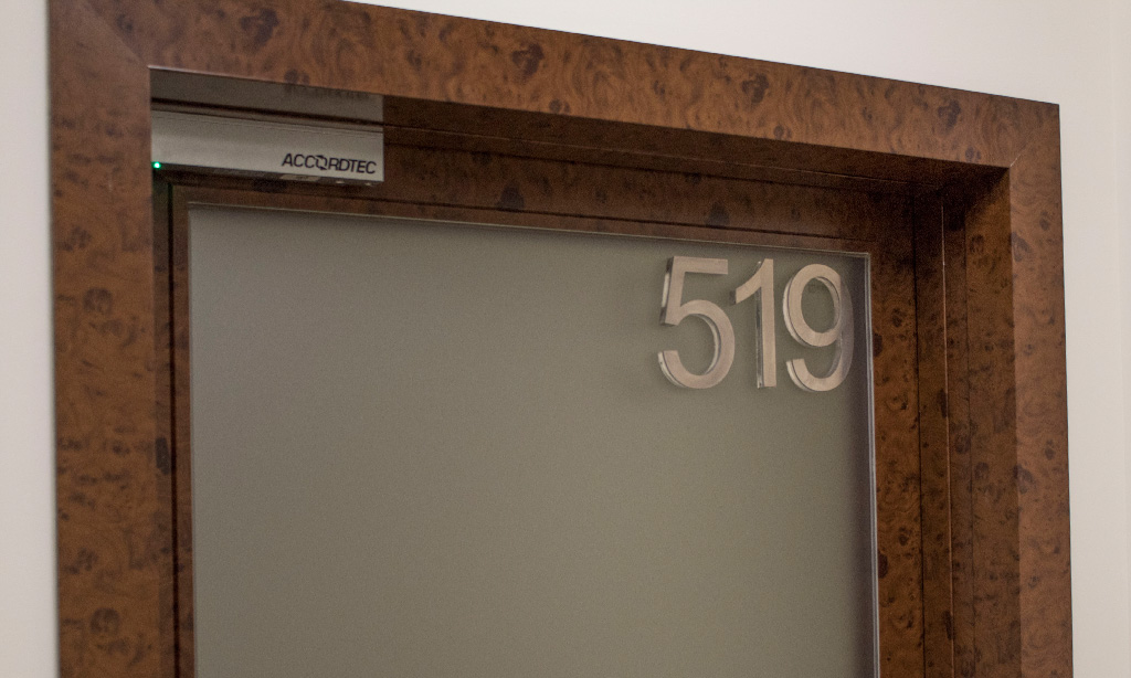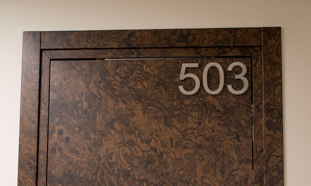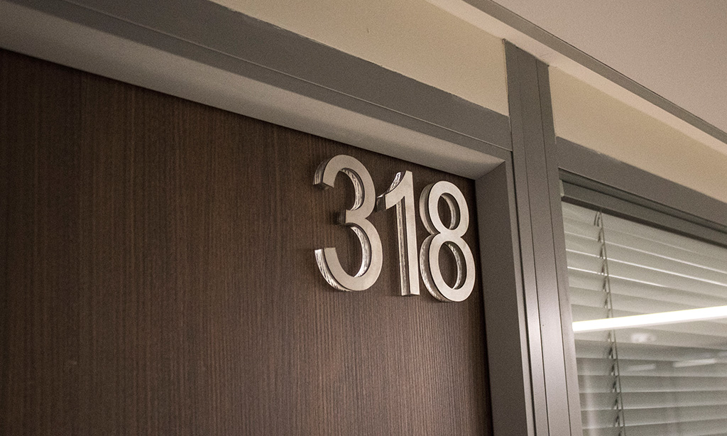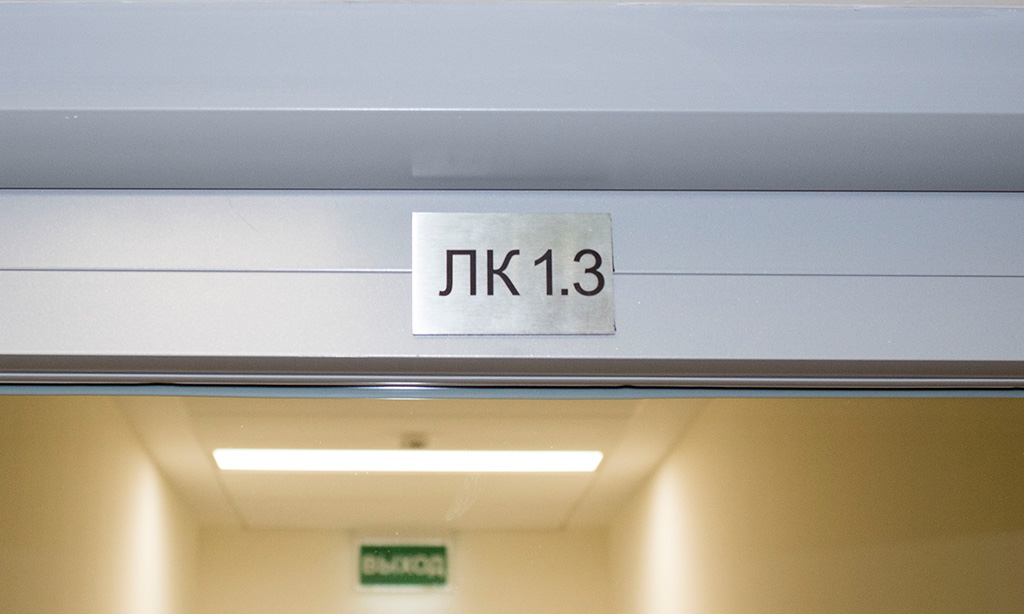 Общий характер интерьера в сочетании с материалами отделки помещений не предполагали очень уж смелых экспериментов с дизайном навигационных табличек. Поэтому нами был выбран достаточно строгий и лаконичный стиль, визуально стремящийся к направлению «Hi-tech».