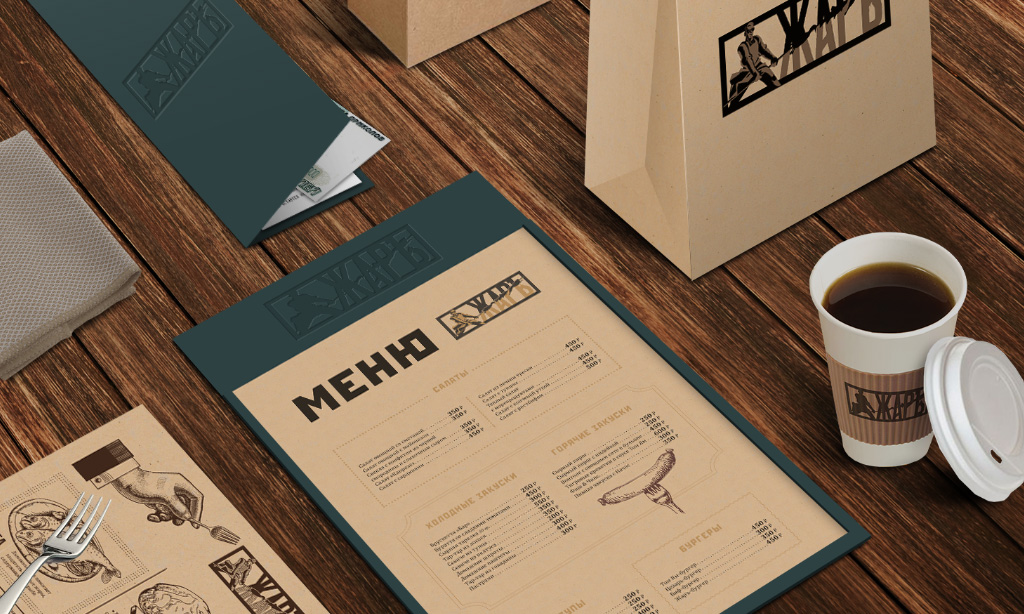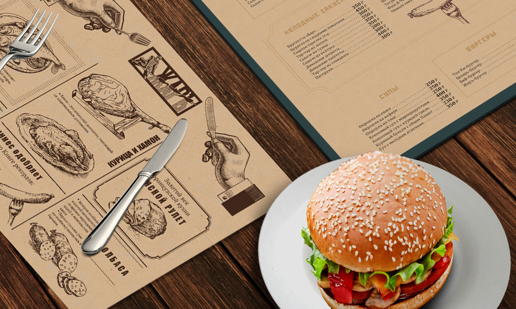 В процессе работы над этим проектом мы проанализировали в буквальном смысле море разнообразных информационных источников и референсов для создания десятков различных оригинальных вариантов дизайна. Не будем пересчитывать все предложенные нами и отвергнутые клиентом версии, скажем только, что, в конечном счете, нам удалось остановиться на старой доброй «крафт» стилистике для серии ресторанных POSM-материалов.