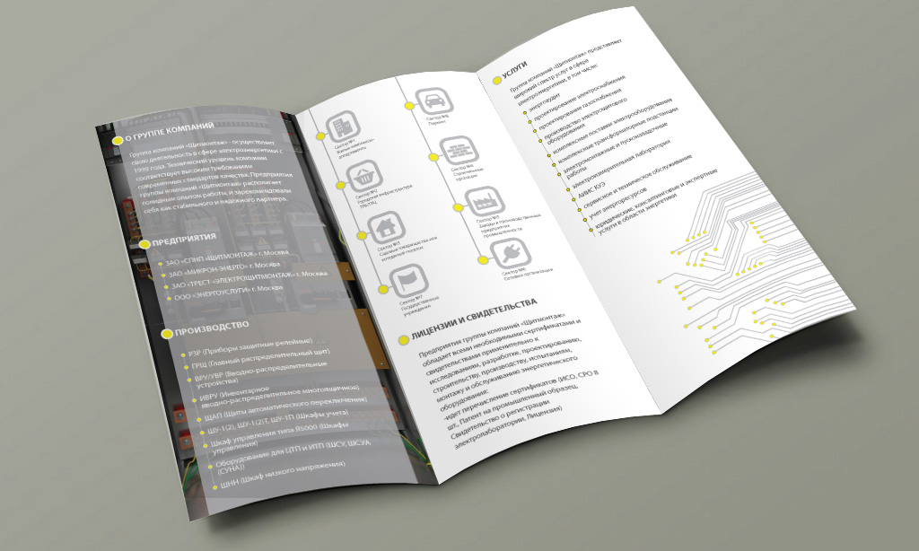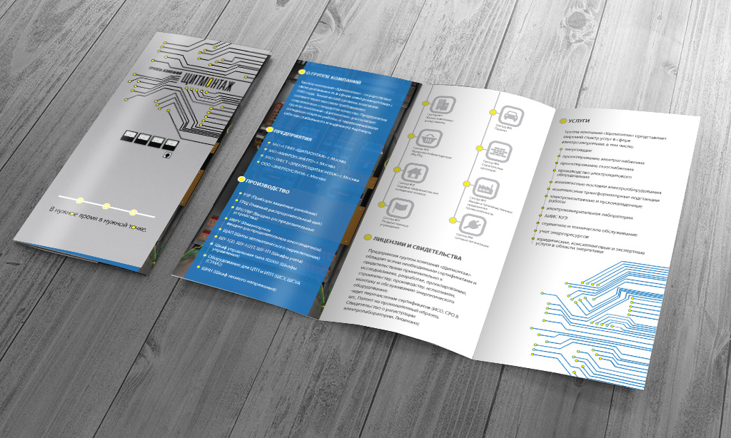 При разработке дизайн-макета лифлета, наши дизайнеры действовали строго в соответствии с руководством по использованию фирменного стиля компании-заказчика. Были использованы фирменные графические элементы и стилизованные иконки из брендбука, а ткак же были созданы дополнительные визуальные штрихи, полностью вписывающиеся в основную концепцию. Цветовое решение лифлета также было обусловлено зафиксированным фирменным стилем компании.