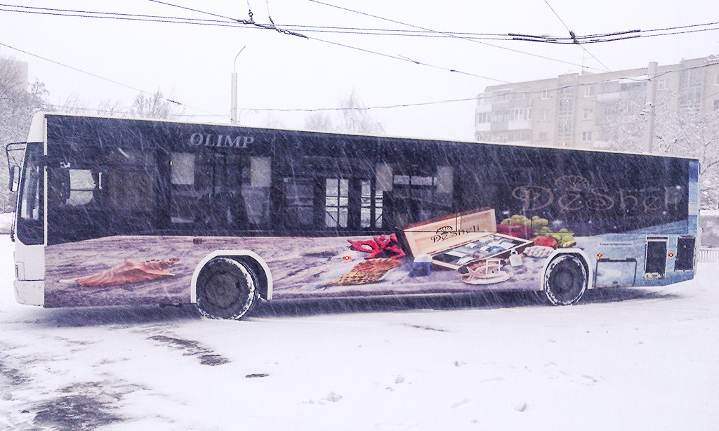 Для того, чтобы рекламное сообщение от «DeSheli» было ясным и запоминающимся, сотрудники нашего креативного отдела разработали яркую концепцию дизайна для рекламы на общественном транспорте, предложив заказчику различные варианты эскизов.
