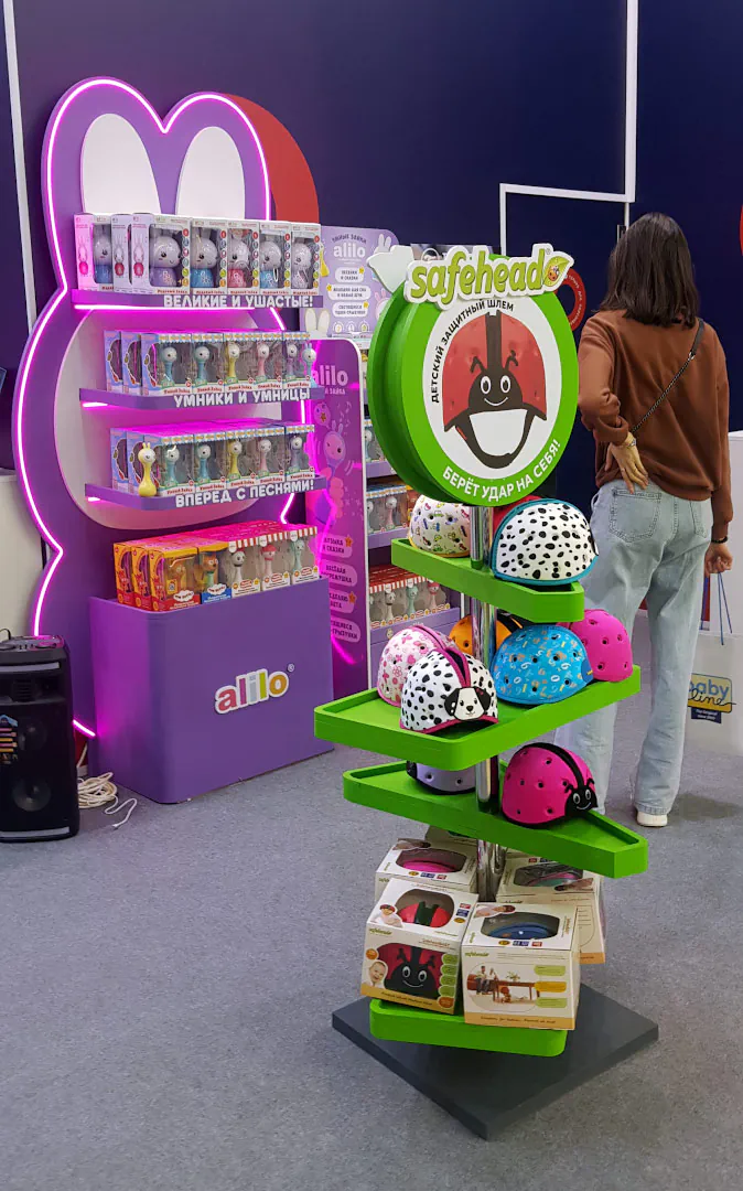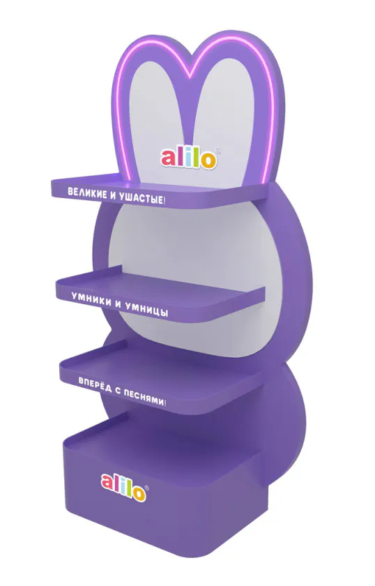 Форма стойки перекликается с самым популярным продуктом alilo — «умным зайкой», развивающей игрушкой.
