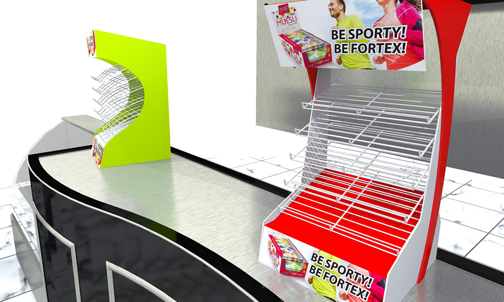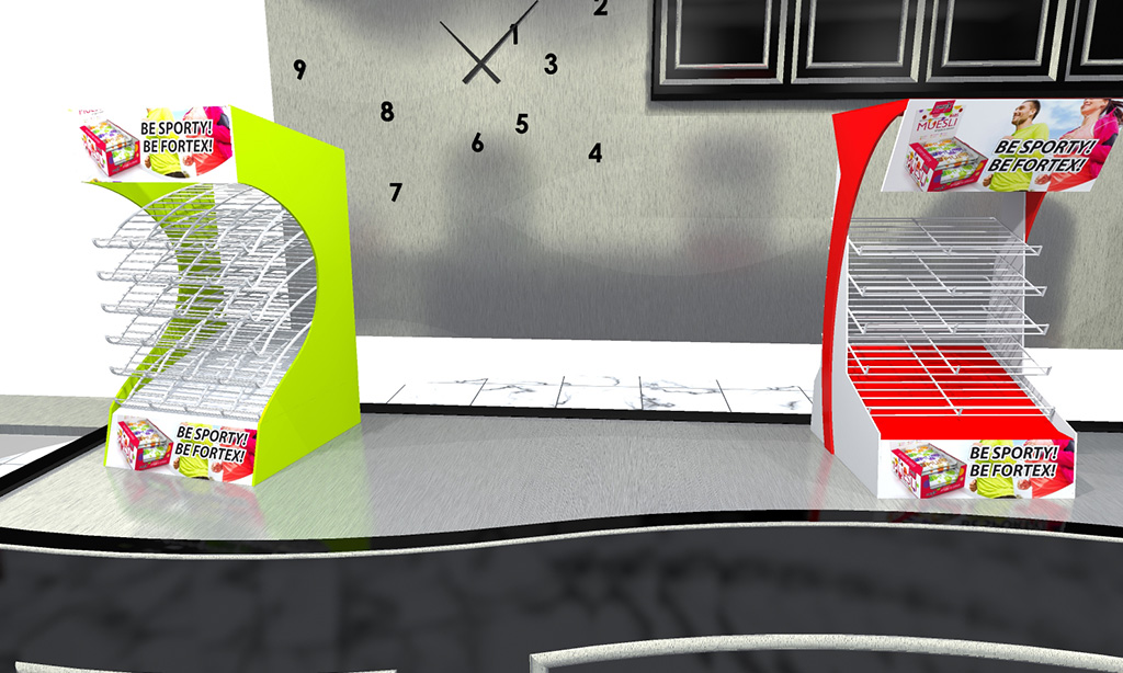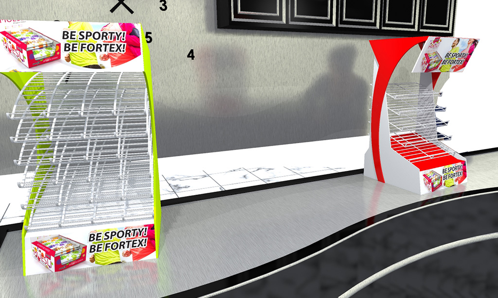 Наши инженеры при помощи дизайнеров разработали полную техническую документацию, соответствующую всем этапам изготовления выставочной промо-стойки. Проект был подготовлен в двух различных цветовых решениях, основанных на фирменном стиле компании «Fortex». Завершающим штрихом нашей работы стала подготовка дополнительных принтов для последующего нанесения на рекламную стойку.