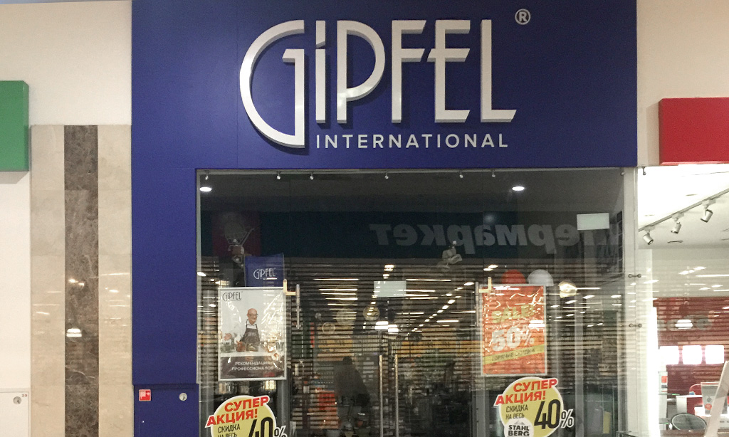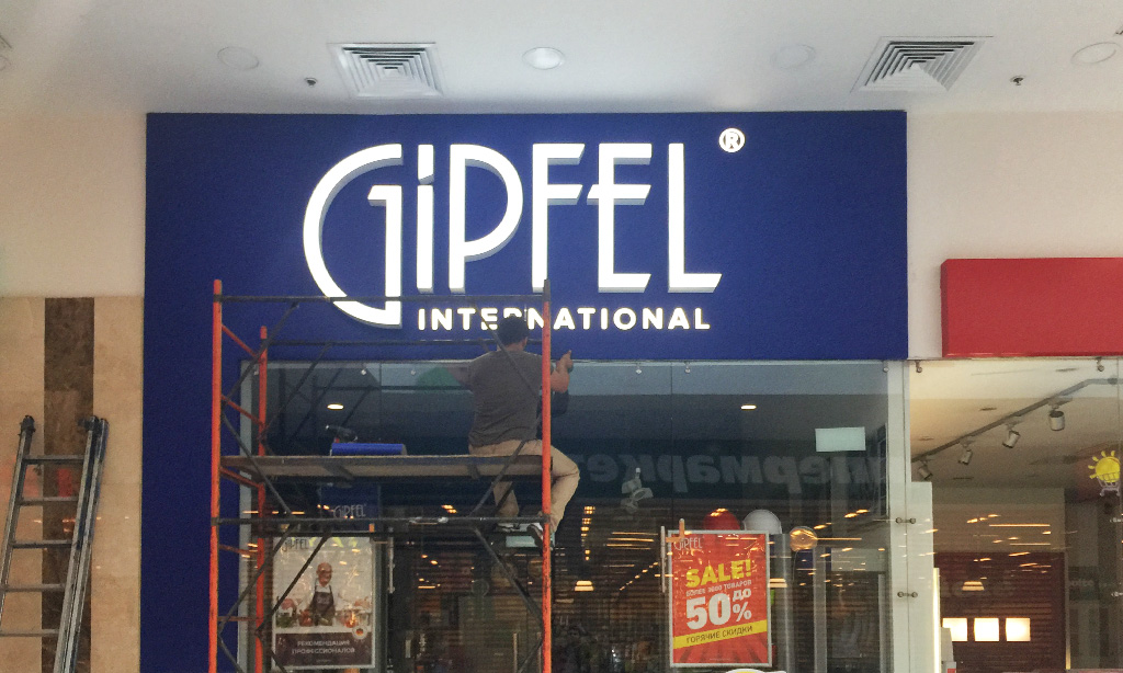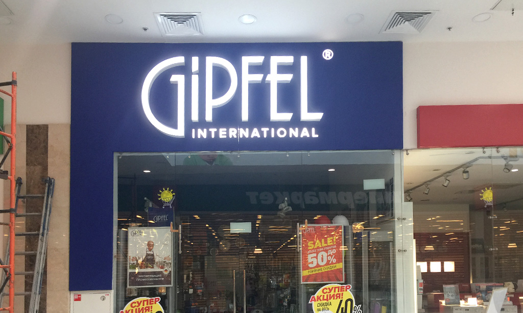 Компания Gipfel International уже давно зарекомендовала себя на российском рынке и не нуждается в дополнительных экстраординарных рекламных ходах. Поэтому в процессе разработки дизайна входной группы была сделана ставка на классику — мы использовали фирменный цвет компании. А ещё задействовали эффектную светодиодную подсветку при оформлении вывески.