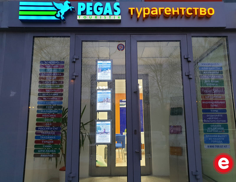 Пример изготовления тонкой световой панели для компании «Пегас Туристик».