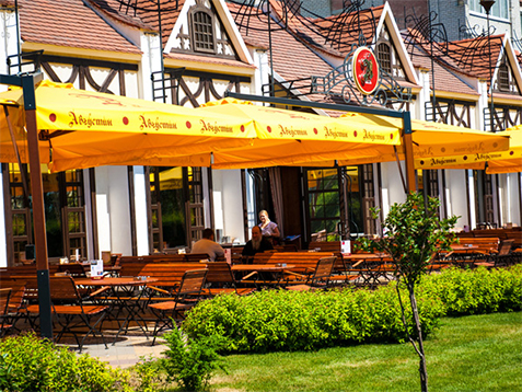 Уличные зонты для летних кафе обладают массой преимуществ: