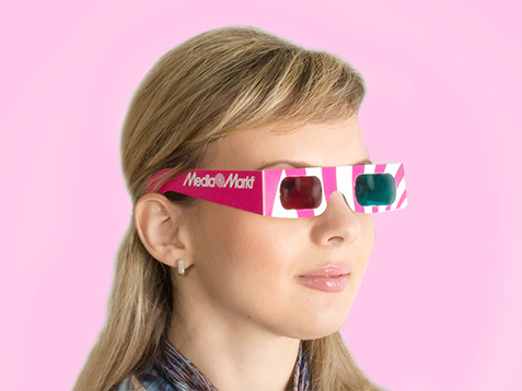 В любом случае дизайн 3D очков разрабатывается индивидуально по вашему заказу специалистами «Эффекта», вы можете выбрать сигнальные образцы продукции после согласования дизайн-макета и примерить на себе все получившиеся креативные образы. Также мы предлагаем вам более стабильные очки в промышленной пластиковой оправе или очки, встроенные на красочный картон с перфорацией, с возможностью «выдавливания».
