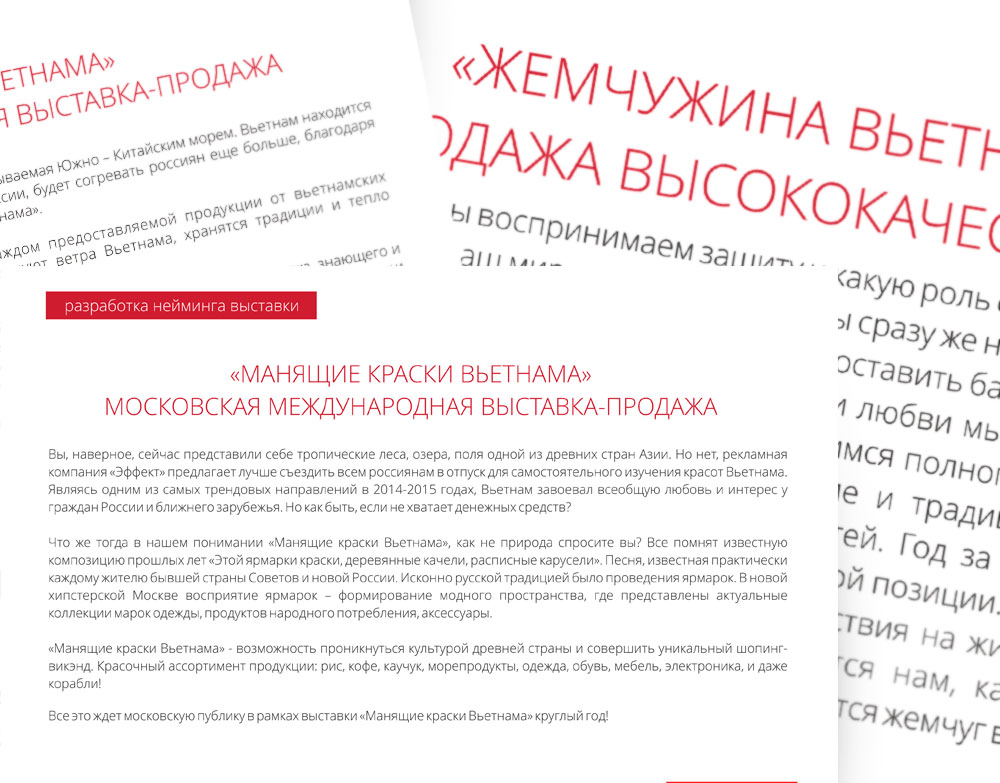 Например, специалисты рекламно-производственной компании «Эффект», профессионально и успешно занимающиеся неймингом на протяжении уже многих лет, всегда начинают свою работу с глубокого и детального анализа всех статистических данных, имеющих отношение к сегменту рынка, в котором будет представлен новый продукт или услуга, для которых, собственно, и был заказан нейминг. Затем они углубляются в лексические и семантические изыскания. А часто ещё и в фонетические: ведь нередко случается, что нейминг требует не спрятанных смыслов и значений, а просто красивого и лексически аргументированного звучания. В этих случаях, нейминг — это почти как музыка. Вы произносите слово, и оно звучит.