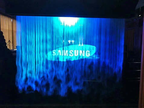 Туман-экран подвешивается в нужном для Вашей промо-активности месте к потолку или какому-то элементу конструкции таким образом, что нижняя часть экрана оказывается на высоте не ниже двух с небольшим метров от пола. Затем туман-экран начинает генерировать пар и выпускать его вниз. Таким образом получается, что туман струится до самого пола, образовывая нечто вроде плотного туманного заслона. А дальше просто: на образовавшийся туманный заслон направляется проекция, и мы получаем практически повисшую в воздухе живую картинку.