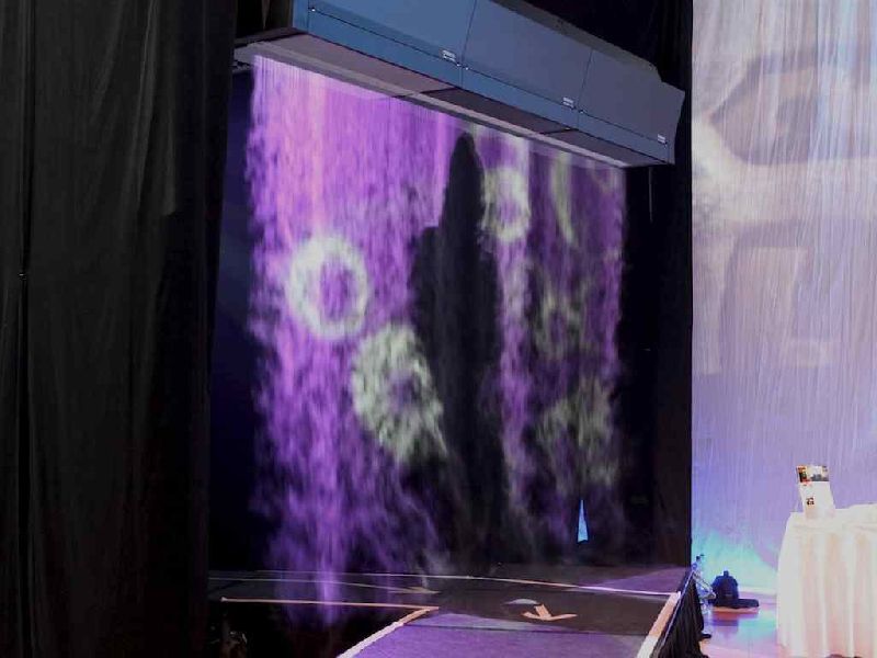 Туман-экран — это, как и следует из названия, поверхность для отображения проецируемого видео (хотя проецировать вполне можно и статические картинки), состоящая из тонких струек пара, то есть из тумана.