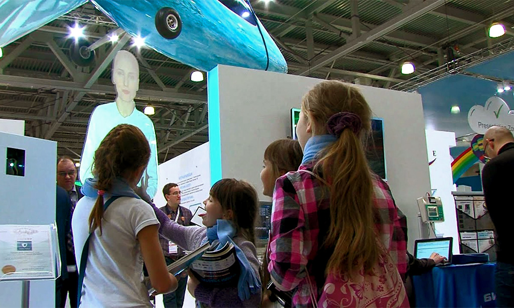 - при проведении выставок или конференций — виртуальный или интерактивный промоутер на Вашем стенде поможет выделиться на фоне конкурентов и повысить интерес к Вашей продукции;