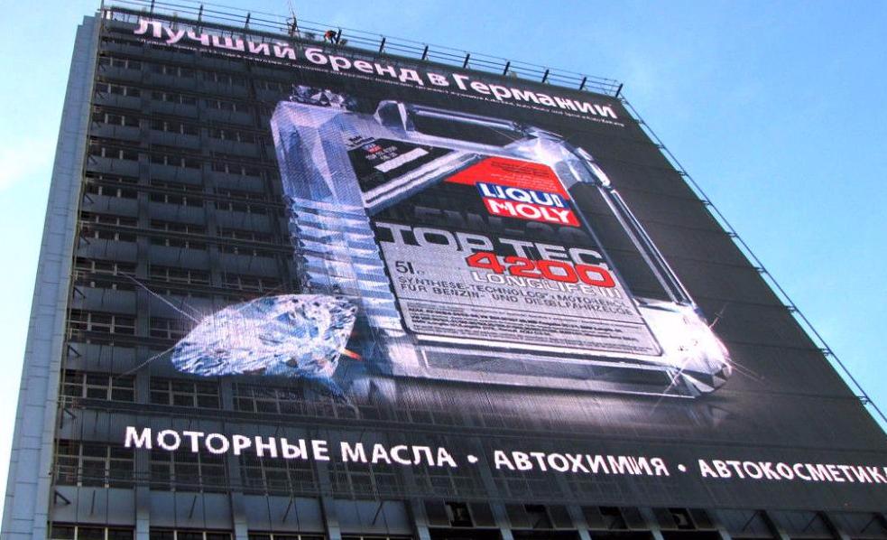 Медиафасад представляет собой современный и очень эффективный метод наружной рекламы, способный воздействовать на широкую аудиторию. Устройство представляет собой большой экран, состоящий из светодиодных элементов, покрывающее значительную площадь. Устанавливается такая конструкция на фасад зданий и сооружений, нередко на крыши.