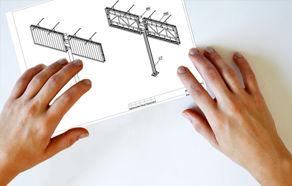 Сотрудники креативного отдела компании разработают дизайн-проект будущей рекламной конструкции и 3D макеты, после чего Вам будут предоставлены несколько вариантов на выбор. Далее следует технический этап — все необходимые расчёты для проектирования рекламной конструкции будут осуществляться высококлассными специалистами с обширным опытом — проектировщиками, конструкторами и инженерами.