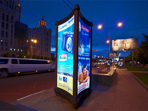- стандартный сити-формат, представляющий собой застеклённый короб с расположенным внутри рекламным баннером