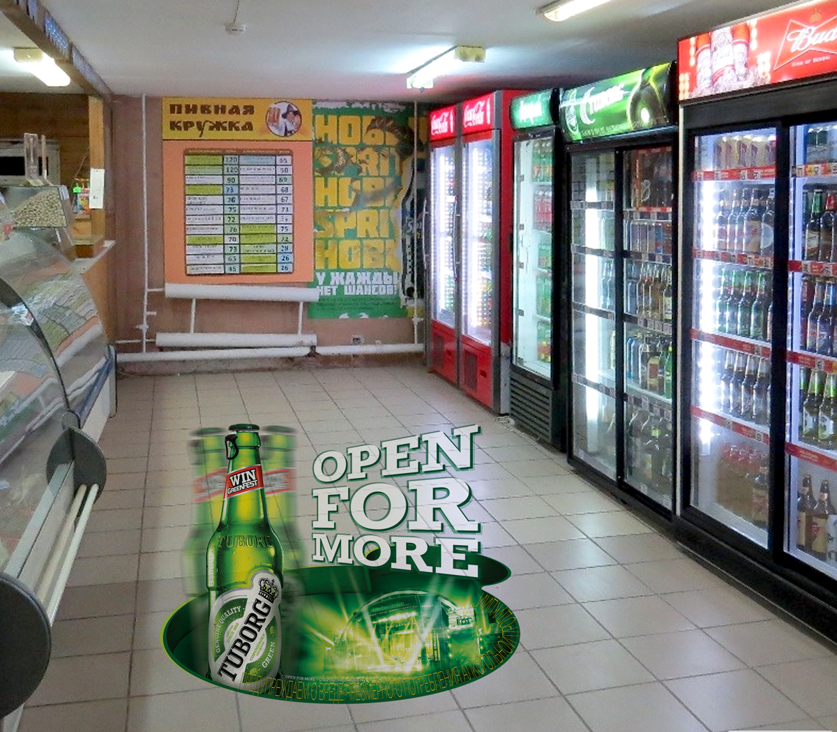 - реклама на поверхностях внутри торговых залов — на стенах, на полу, и так далее
