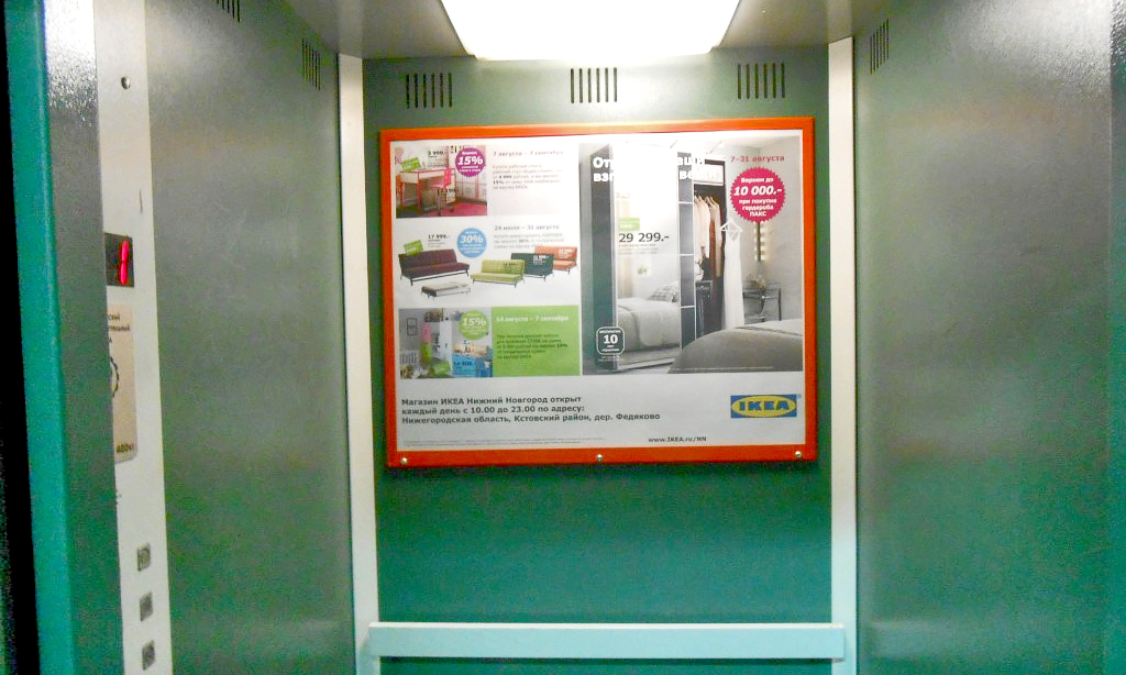 В лифте, при этом, человек гарантированно изучит рекламный модуль полностью, что делает размещение рекламы в антивандальных стендах в кабинах лифтов, пожалуй, самым эффективным инструментом контактирования с аудиторией в рамках жилого дома.