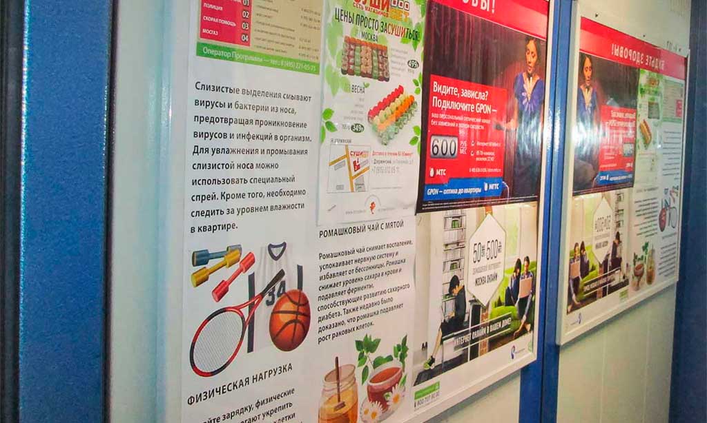 Также рекомендуем ознакомиться с эффективной рекламой в подъездах, на ковриках и зеркалах.