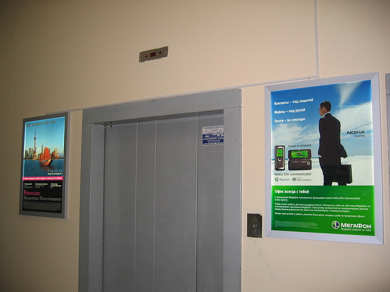 - значительная продолжительность контакта с целевой аудиторией — поездка на лифте, в зависимости от особенностей здания, может длиться больше минуты