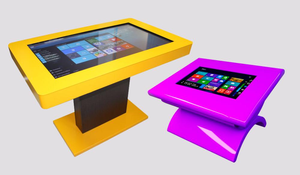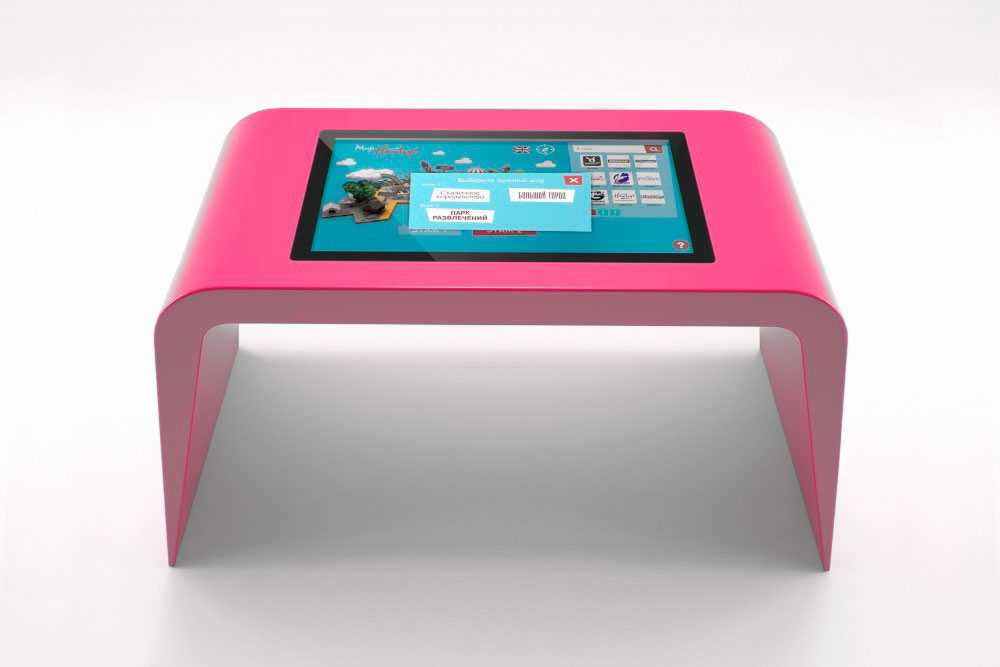 Дизайн конструкции интерактивного стола может быть абсолютно любым. Рекламная компания «Эффект» предлагает Вам различные варианты исполнения конструкции интерактивного стола.