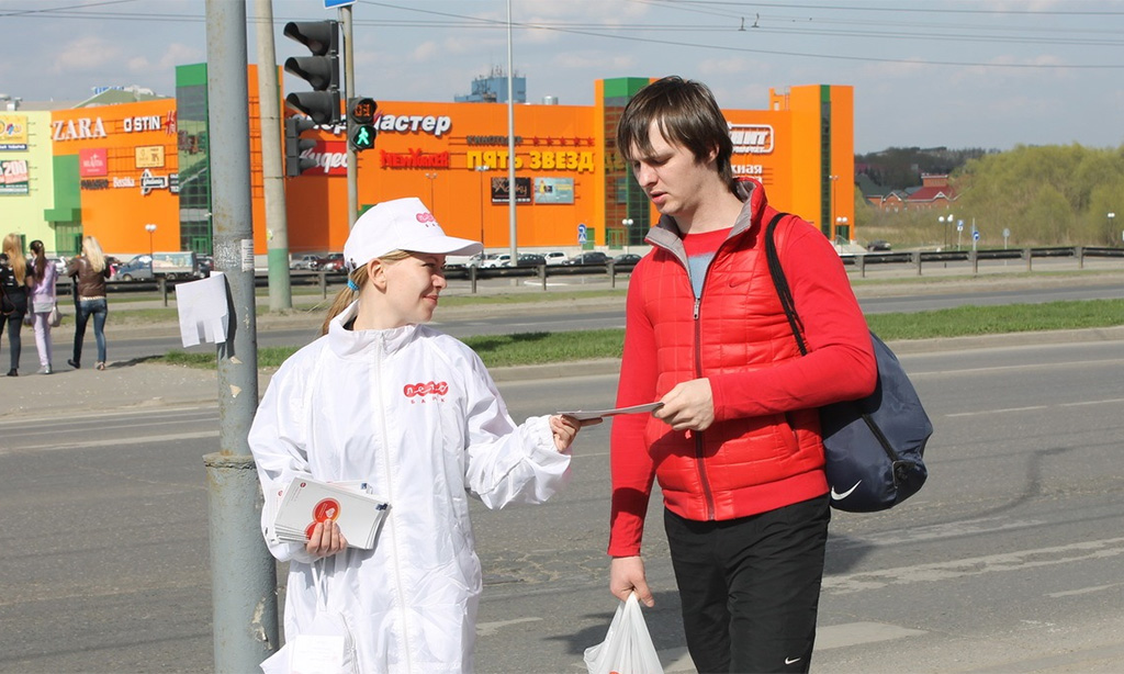 Важно понимать, что расположение вашего магазина, салона, отделения или офиса продаж имеет большое значение для привлечения заинтересованной публики. Мы можем проводить раздачу листовок вблизи с вашим офисом продаж или отделением банка — это способствует большему количеству обращений. Промоутер всегда может направить потенциального клиента прямо к вам, клиент сможет получить полную информацию сразу и приобрести товар или воспользоваться вашими услугами.