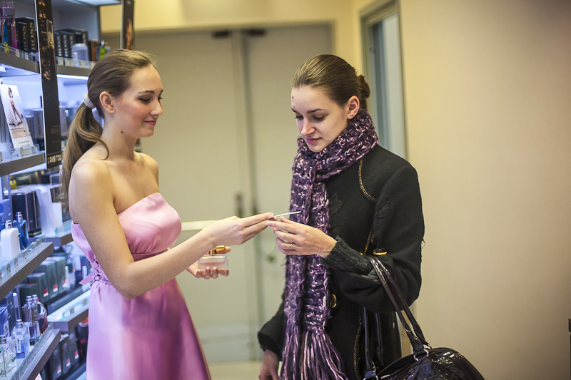 Рекламно-производственная компания «Эффект» тщательно проводит кастинг промоутеров на спреинг. Как правило, крупные торговые марки заказывают акцию по спреингу в рамках новых рекламных кампаний, демонстрирующих потенциальным покупателям удивительный и многогранный мир модных парфюмерных достижений.