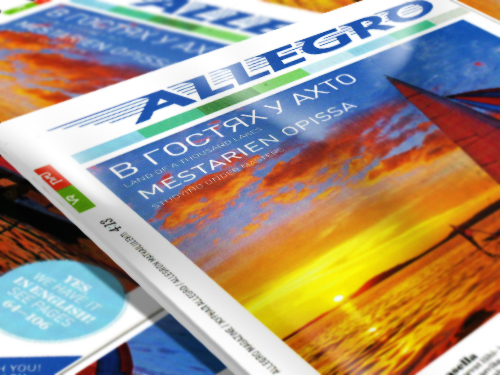 Официальный журнал «Allegro» — современное глянцевое издание с яркими фотоиллюстрациями и редакционными материалами. Это развлекательный журнал для чтения в пути, содержащий материалы, которые затрагивают все аспекты жизни и рассчитаны на высокообразованную, взыскательную и интеллектуальную аудиторию, каковой и являются пассажиры поезда «Allegro», курсирующего по маршруту «Санкт-Петербург — Хельсинки».