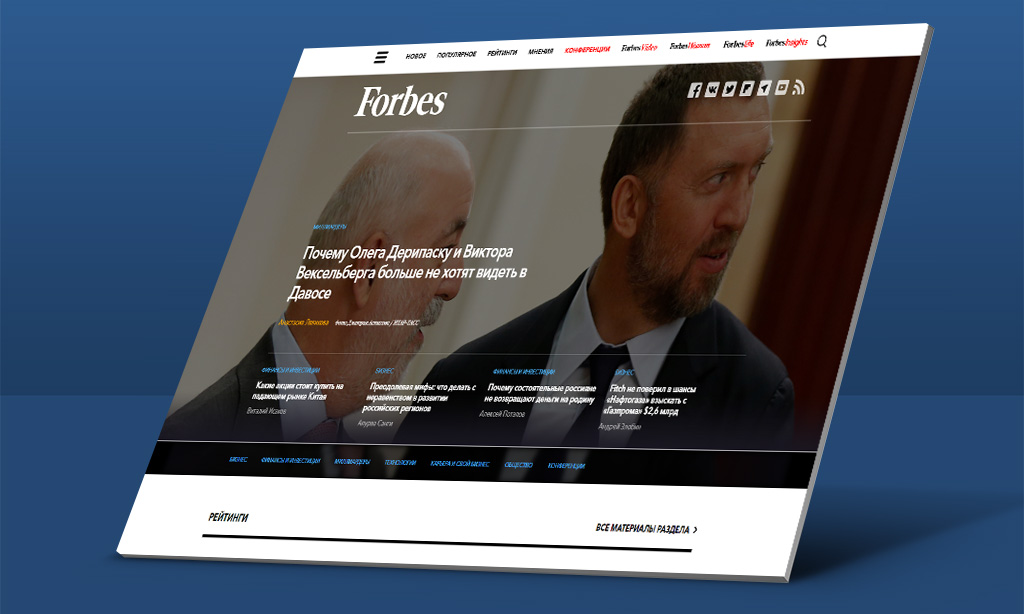 Реклама в журнале, на сайте Forbes